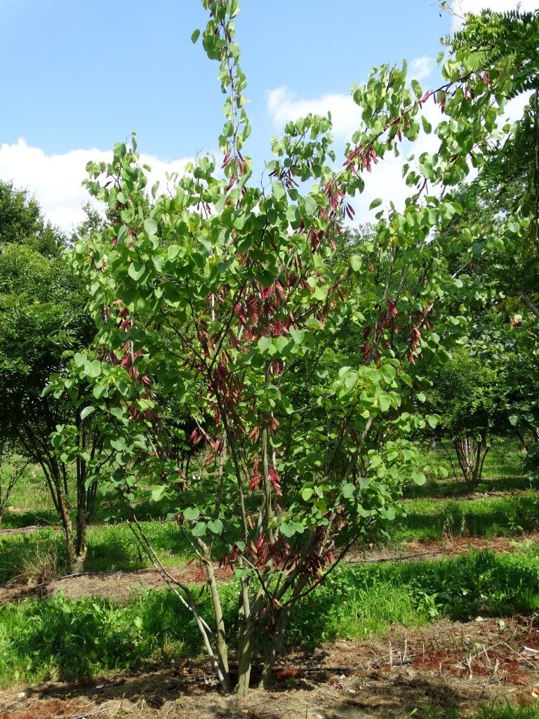 De Cercis bloeit rijk, de bloemen staan in compacte bundels. Prachtige boom. Hij kan goed tegen droogte.