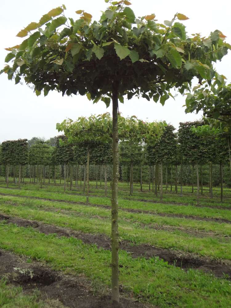 De Tilia henryana heeft een bijzonder gekarteld blad, dat tijdens het uitlopen roze tot donker bronskleurig is.