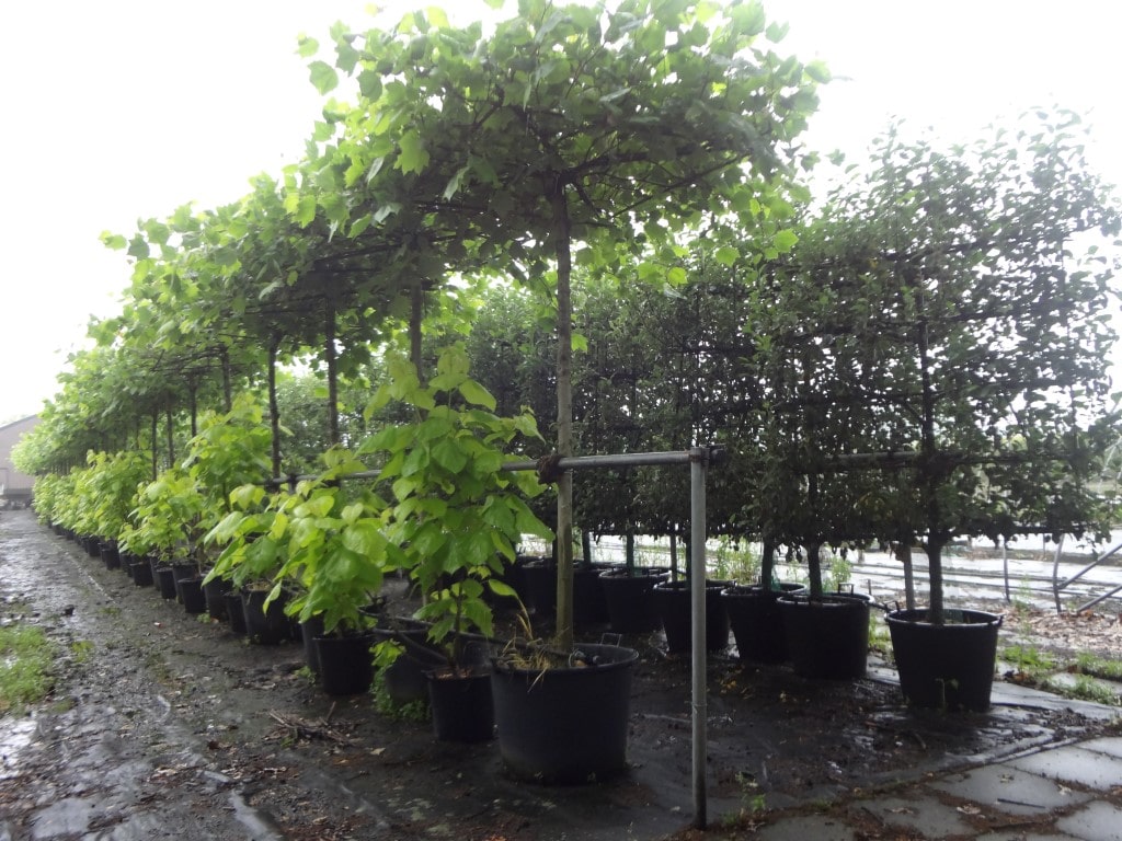 Eine große Mehrheit in unserem Sortiment Formgehölze und mehrstämmige Bäume können in Containern und Plantsack angeboten werden. Der Vorteil dieser Bäume ist, dass sie im Grunde das ganze Jahr über gepflanzt werden können. Man muss nicht warten, bis die Blätter der Bäume gefallen sind, was die Möglichkeit bietet, ein Projekt in seiner Gesamtheit sofort erfolgreich zu vollständigen. Die Bäume werden in Containern oder Plantsack vergossen und werden zum Zeitpunkt der Auslieferung an den Kunden vollständig verwurzelt sein.