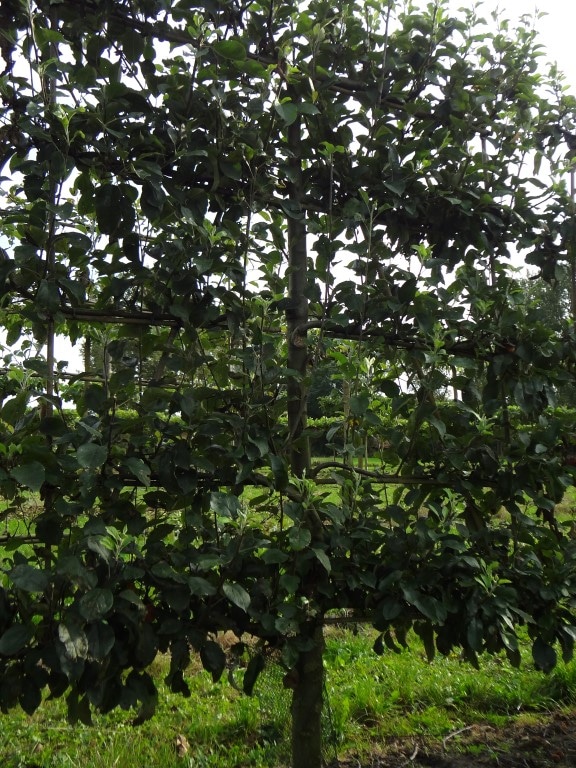 Malus domestica ‘Gravensteiner‘ ist ein früh blühender Apfelbaum mit weißer bis hellrosa Blüte. Die Knospen der Blüte sind dunkelrosa. Die Äpfel dieses Baumes haben eine gelb-orange Farbe und sind bekannt für ihren süßen, frischen Geschmack