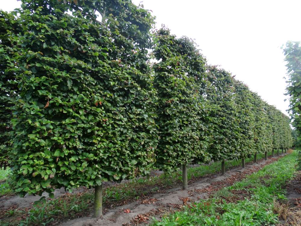 This tree, also known as (Persian) ironwood, has an attractive natural growth with beautiful autumn colors: red, yellow and purple. In combination with the low pleached shape we created, this results into a very exclusive appearance.