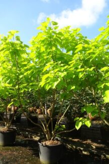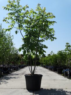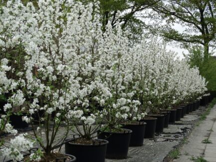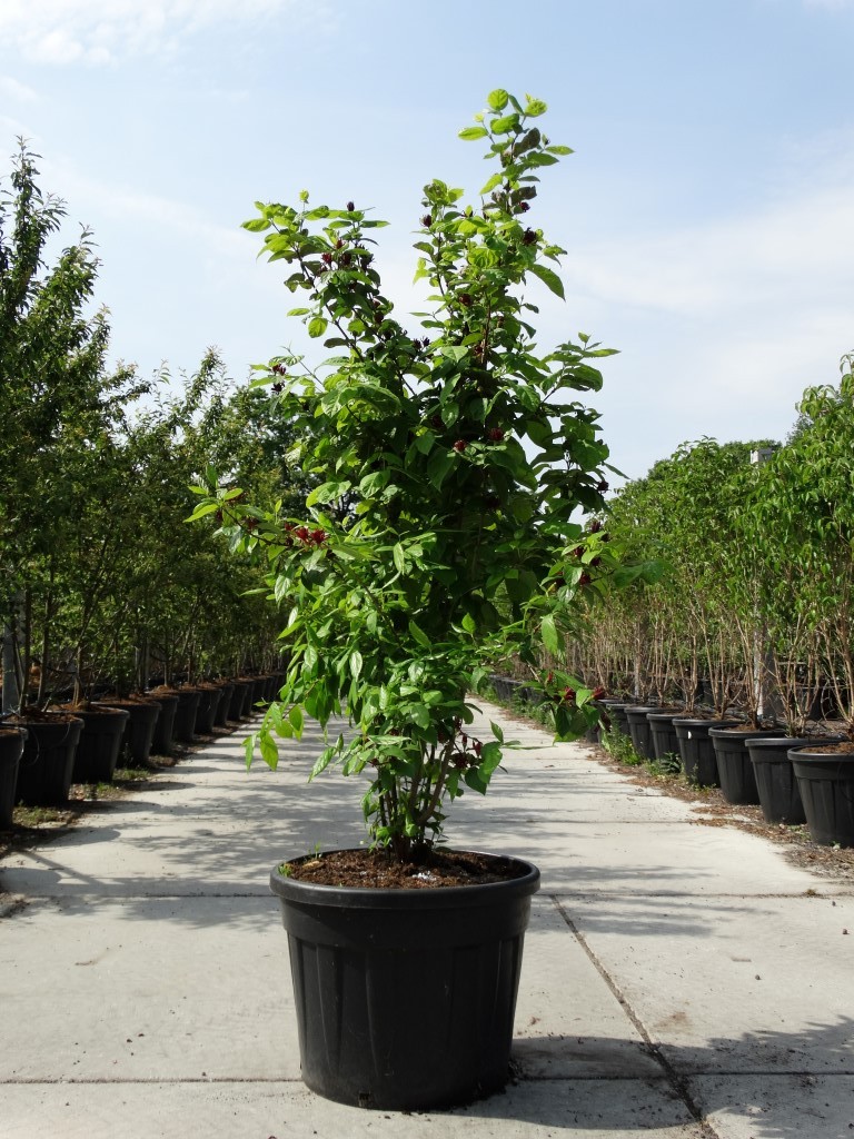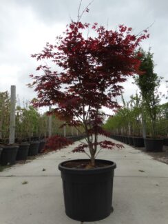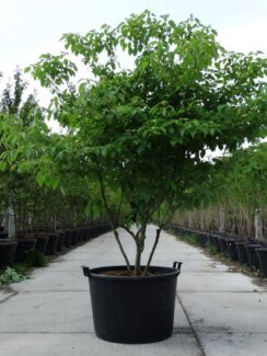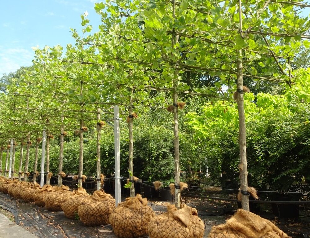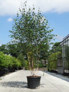 We can offer you a large part of our range of shaped and multi-stemmed trees in container and plant bag. The advantage of these container- and plant bag trees is that they can be planted all year round. One does not have to wait until the leaves of the trees have fallen, which offers the possibility to complete a project in its entirety immediately. The trees are potted in containers, airpot or plant bag and are fully rooted when they will be delivered to the customer.